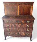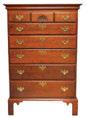 SESSION 2 AT 5:00 PM -- FURNITURE: Good antique small size carved Pennsylvania mahogany low boy with carved legs and nice scalloped apron, great pair of 18thC inlaid Continental card tables with playing card inlay, fine group of fine antique English furniture from Beacon hill apartment to include great 18th C architect table with adjustable gallery top, fine George III antique 18thC writing table with triple pedestal base, fine mahogany campaign dining table with reeded legs and brass handles, 4 draw antique English chest 18thC octagon shaped inlaid wine cellarette, unusual English 1 draw stand, Chinese Marble top side table, Antique 18th C London tall clock signed Stephen Winrowe, 18th C English small size kneehole desk w/ brass handles, fine antique Federal mahog mirror w/fancy gold gilt floral decoration, carved Louis XVI style armchairs, antique inlaid mahogany secretary desk (attr to Joseph Short Newburyport, MA), set of 6 fine Baker shield back chairs, antique English 2 part secretary, lg Pennsylvania antique walnut tavern table w/stretcher base, 2 antique card tables with Marlboro straight legs, Wm. Tilman 2 part inlaid dining table w/ leaf, 5 draw country tall