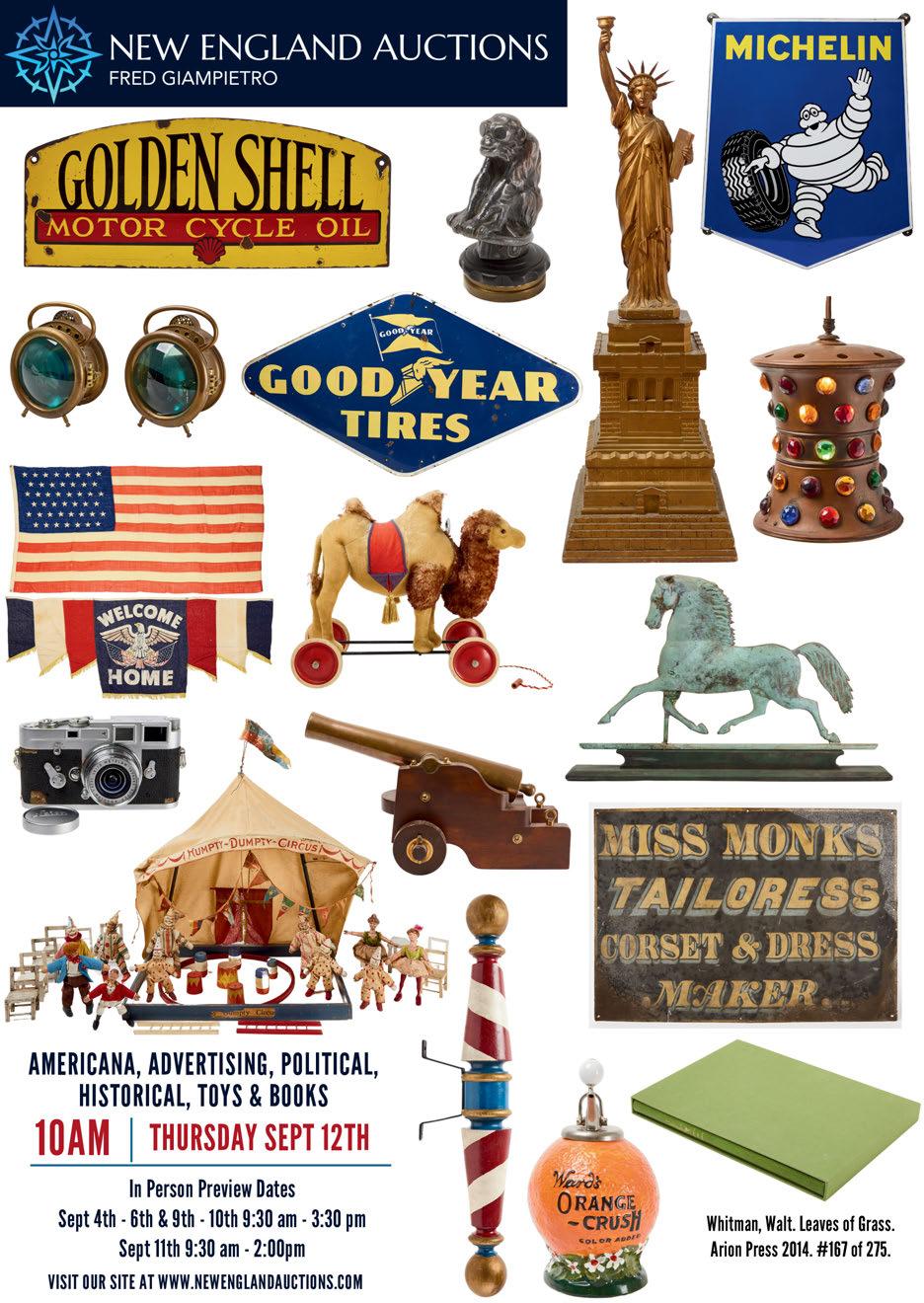 It seems like only yesterday that summer’s heat and humidity was slow cooking New England. Come to think of it, it was only yesterday. That aside, our first auction this fall offers a bountiful harvest of books and ephemera for your perusal.
