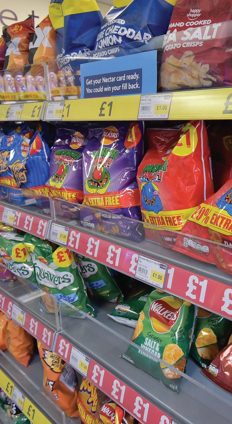 Bagged snacks are worth £313m, and Collins says the use of PMPs in this category is popular with both retailers and consumers: “With 40% of snack shoppers saying they are more likely to buy a product with a PMP, the format is now the largest within crisps, snacks and nuts (CSN) across symbols and independents.”