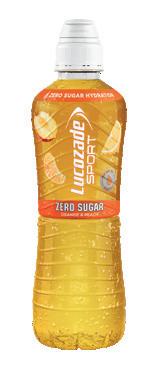 Lucozade Sport Zero Sugar – Available in Orange & Peach and Raspberry & Passion Fruit flavours, Lucozade Sport Zero Sugar moves the brand into the low- and no-sugar category. l
