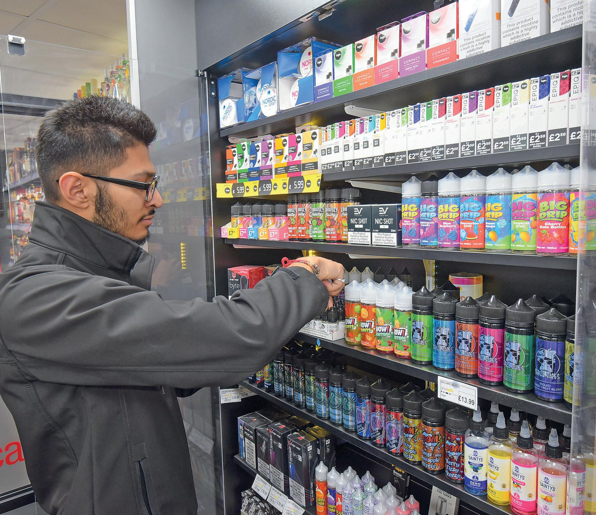E-LIQUIDS: Retailers are losing hundreds of pounds of profit on expired vaping products. Hardik Patel, owner of Svarn News & Off Licence in Stafford, Staffordshire, was forced to lower the price on Edge e-liquids worth £700-to-£1,000 at the end of last year as no reps came to his store to swap out the slowselling lines.