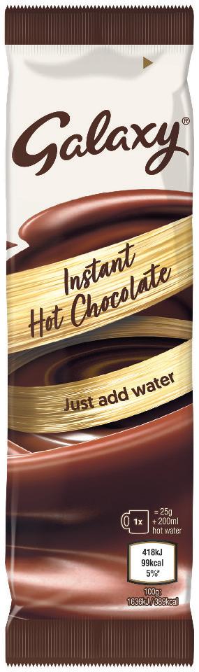 It is also available in 25g packs, o ering a taste synonymous with the Galaxy brand. It is designed for shoppers in a rush or heading to the o ce for the day. For retailers, it can be a strong alternative to co ee sachets.