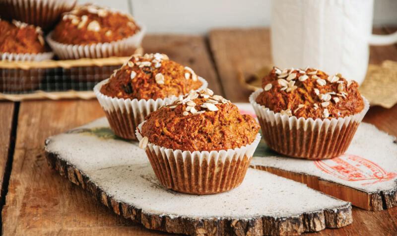 тами до однородной массы. Выложите в смазанные формочки для маффинов и выпекайте при температуре 392 оF около 45 минут.
