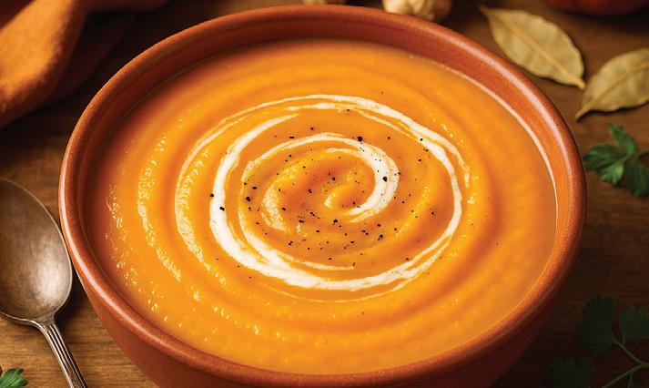 л. сливочного масла, 500 мл овощного бульона, 100 мл сливок, соль, перец. Приготовление: нарезать овощи и обжарить с маслом. Добавить бульон и тушить 20 минут. Перемолоть блендером в пюре, влить сливки, приправить