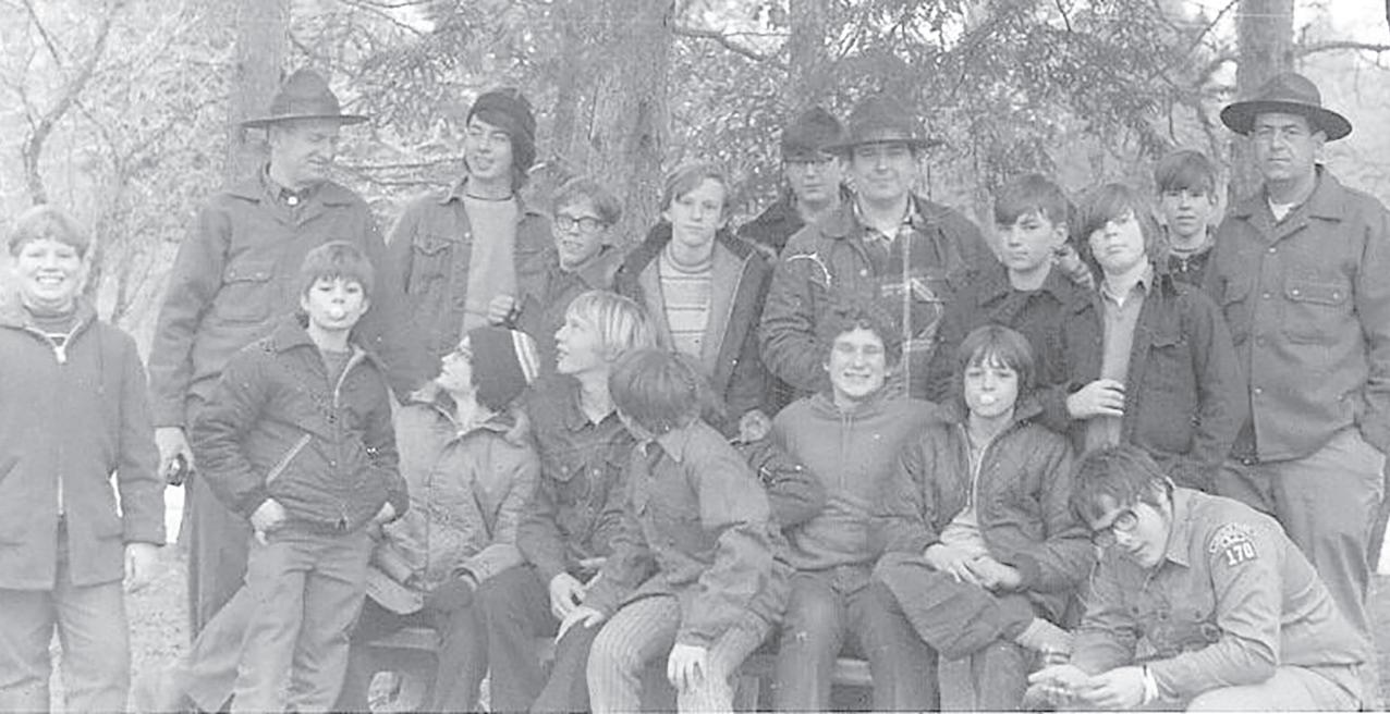 From 1972, a photo of Boy Scout Troop 170 taking a break from a hike. My dad is on the far left. Assistant Scoutmaster Robert Vitale is center stage. And, Assistant Scoutmaster Charles Behnke is standing, far right. All three scout leaders are wearing Smokey Bear hats.