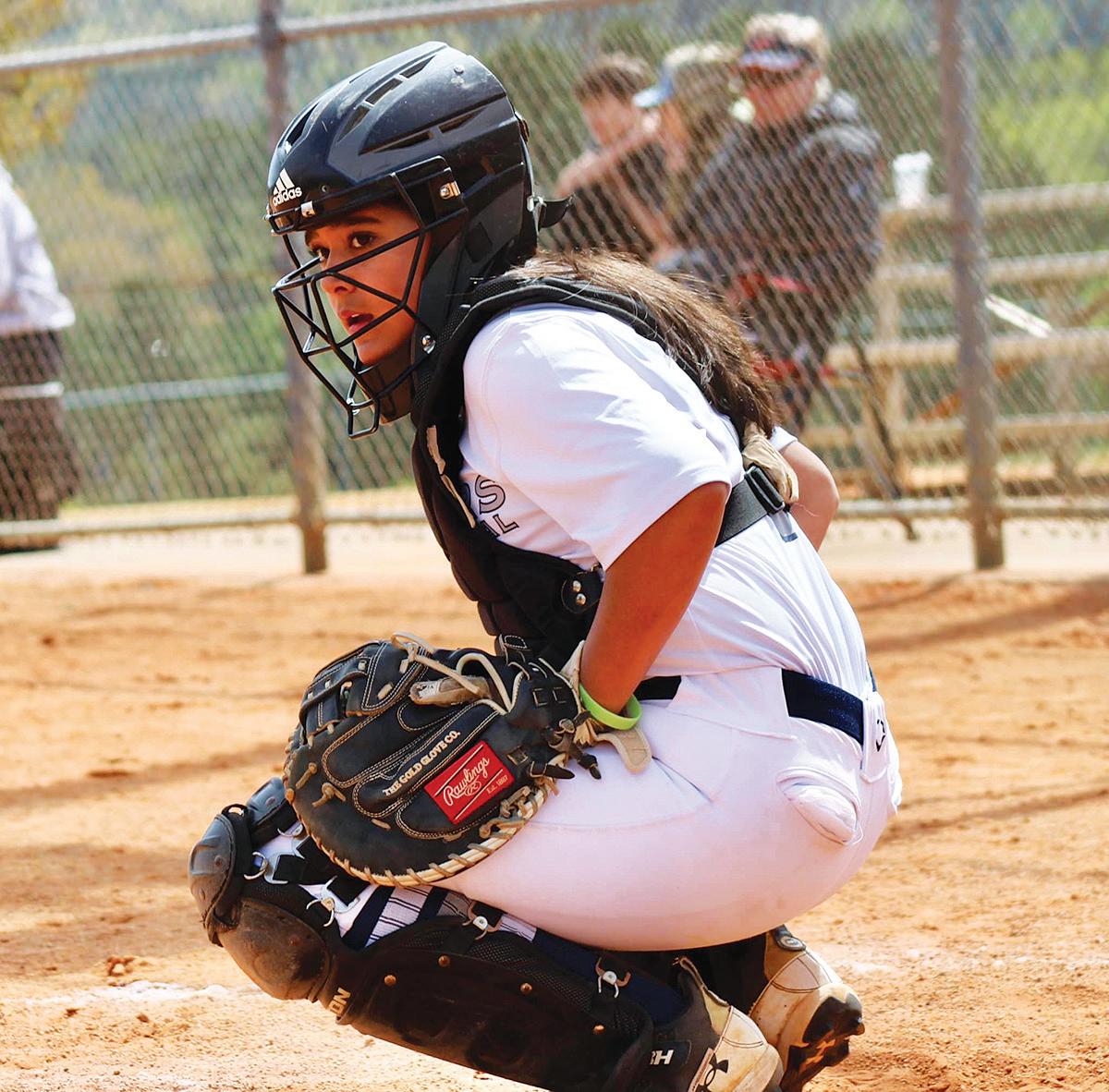 “I love playing softball because it gives myself an opportunity to challenge myself,” she says. “I love being on the field with the other players and doing my part as a catcher to help