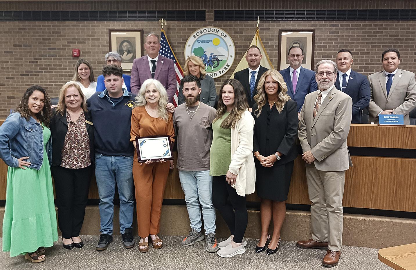 Kallert then called up Ficarra's family as she presented an honorary plaque to her. Ficarra then spoke during the meeting, thanking Mayor Kallert and the Borough Council.