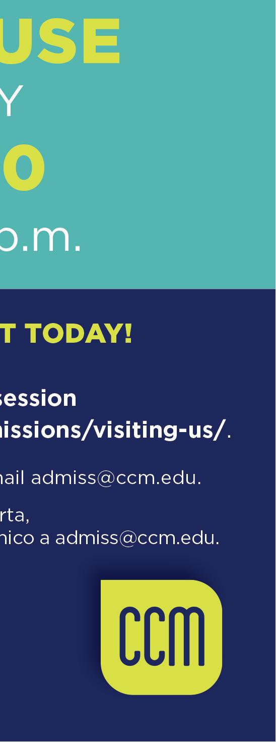 For more information about CCM, visit https://www.ccm.edu/. For more information specifically about the School of Health Professions and Natural Sciences, visit https://www.ccm.edu/academics/ divdep/health-professions-naturalsciences/.