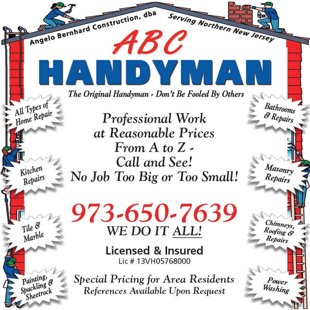 Page 32 • October 2022 • Wayne Life • Like us on facebook www.facebook.com/mypaperonline.com 1-800-691-7549 www.mypaperonline.com Looking for A Plumber? A Contractor? A Roofer? A Tutor? An Electrician? A Mason? A Cleaning Person? You’ll Find It Here and So Much More! HARDWOOD FLOORS PAINTING Mariya’s CLEANING SERVICE Ukrainian ladies clean your home or office to your complete satisfaction. Exper. Refs Avail Call 973-557-3621 CLEANING YOUR AD HERE This Size for As Low As $55 Call 973 809-4784 5% OFF Any Job Over $100 New Customers Only. Must be present at time of estimate. Labor only. Cannot be combined with any other offer. Expires 11/30/22 SERVICES SERVING ALL OF PASSAIC, BERGEN, SUSSEX & ESSEX COUNTIES www.griffithhandymannj.com Owner Operated • Not A Franchise • Carpentry Repair • Sheetrock Repair • Interior/Exterior Painting • Wall Paper Removal • Deck Repair • Concrete Masonry Repair • Powerwashing • Gutter Cleaning • Tile Repair & Regrouting • Caulking • Picture Hanging • Siding Repair • Door/Lock Replacement • Carpet, Tile & Upholstery Cleaning & Many More Services Small or Big Jobs No Problem! 973-831- 610 2 October Special DRYER VENT CLEANING Call for details. Expires 11/30/22 10% Off your service Mention this ad Exp. Dec. 1, 2022 Soft Washing Roof and Gutter Cleanings Commercial • Residential Highly Recommended Free Estimates call David 973.332.5842 xtremepowerwashing.net POWER WASHING Kevin The Painter “A True Professional” Painting & Wall Paper Removal, Kitchen Cabinet Painting and Refinishing Wood & Deck Staining, Sheetrock, Spackle, Repairs & Driveway Sealing 6 DAYS A WEEK • INTERIOR/EXTERIOR • FULLY INSURED References Available • 25 Years Experience 973-979-8043 Schedule your appointment today 908-876-4510 marc@valleygenerators.net VGENERATORS ALLEY We specialize in Installation, service and warranty for Generac, Kohler and most brands of permanent standby and portable generators GENERATORS Our products are organic, vegan and simply amazing! NOW OPEN 200 Wanaque Ave Pompton Lakes (973) 513-9226 SIMON STYLES COSMETICS Also visit us at Simon Styles Hair Salon in Pompton Lakes Skin Care, Make Up, Hair Care, Fragrance, Extensions and much more. HAIR SALON CONSTRUCTION INSURED & LICENSED FREE ESTIMATES When Quality Counts! 973.865.1161 elitepaintingnj@gmail.com elitepaintingnj.com elitepaintingnnj COMMERCIAL & RESIDENTIAL CUSTOM PAINTING SPECIALIST ALL TYPES OF EXTERIOR/INTERIOR PAINTING COLOR CONSULTANT • QUALITY PRODUCTS • WALLPAPER REMOVAL POWER WASHING • WOOD DECK STAINING SHEETROCK INSTALLATION & REPAIR • GARAGE FLOOR EPOXY COMMERCIAL & RESIDENTIAL PAINTING PAINTING Lenovo Desktop $369 2.3 GHz/8GB RAM 256GB/Win 11 Lenovo Laptop $549 3.0 Ghz/8GB RAM 256GB/Win 11 Support Contracts starting at $25/Month/Computer On Site / Remote Support • Wireless & Wired Networking COMPUTERS Pequannock automotive Auto Repair • ASE Certified NJ State Inspection Trailer Hitches & Accessories 973-696-4445 66 Newark-Pompton Tpk., Pequannock GaRY AUTOMOTIVE