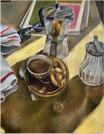 IsabellaNicastro(she/her)isanemergingCanadian artist based in Toronto, currently completing a Bachelor of Fine Arts at OCAD University. Her multidisciplinary practice encompasses painting, photography,andtext,focusingonlivedexperience, self-perception, familial relationships, spirituality, religion, and the rituals of home life. Isabella reinterprets traditional still-life and portraiture through a contemporary lens, offering fresh perspectives on classic themes. Her work has been featuredinseveralexhibitionsandprivatecollections inTorontoandVaughan.