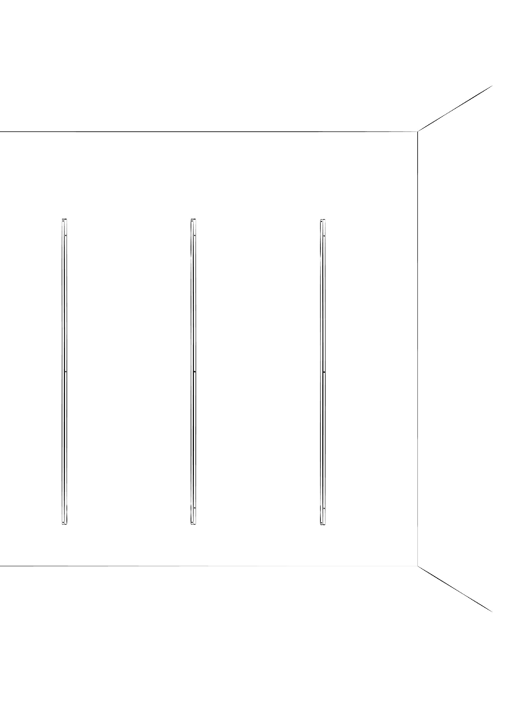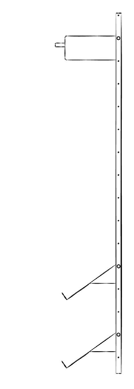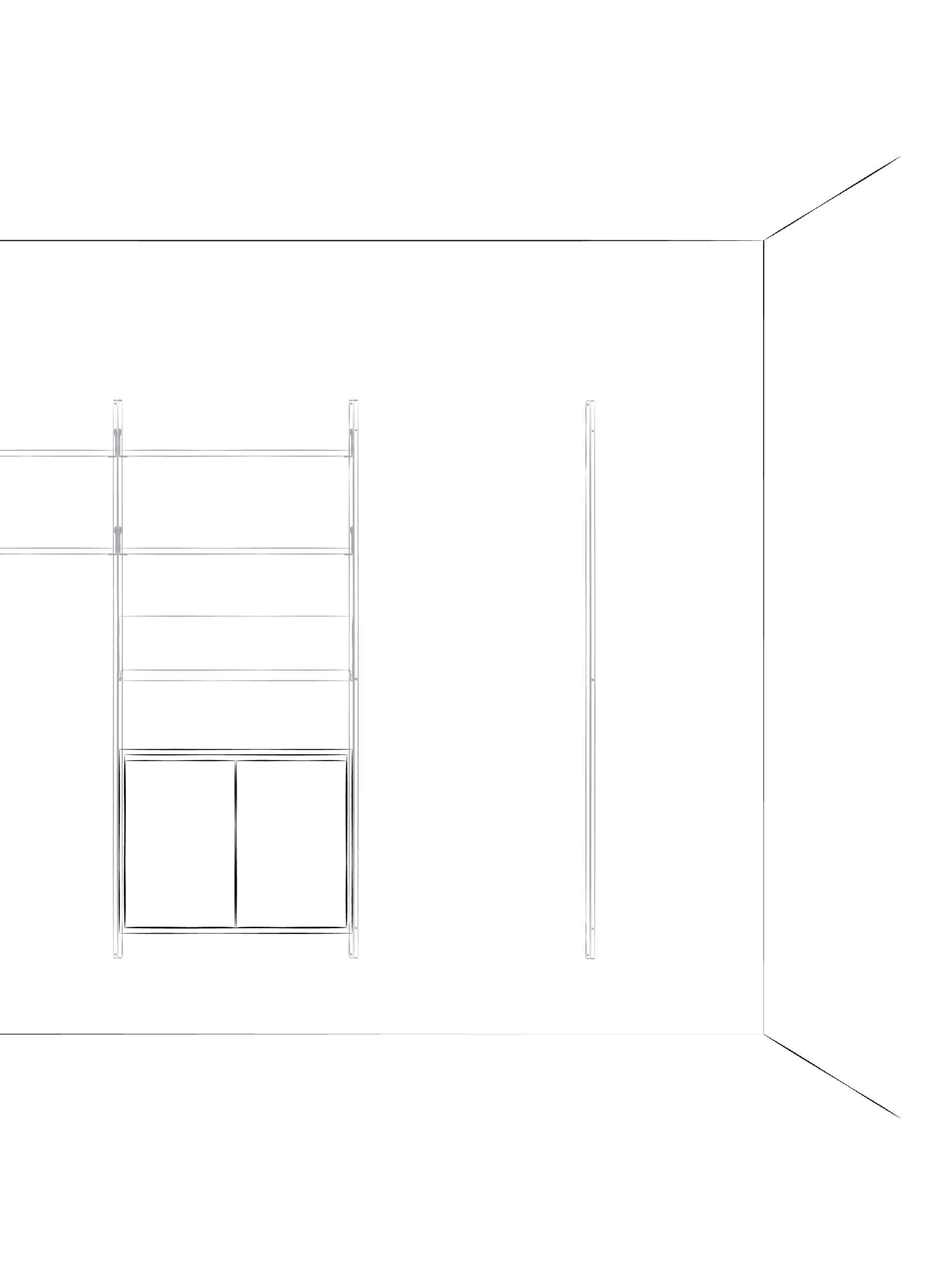 Build your shelving system foundation from the three different lengths of wall bars. Add as many as you wish in a horisontal flow with 800 mm distance between each bar. Holes in the wall bars allow for a free but controlled placement of shelves and other elements.