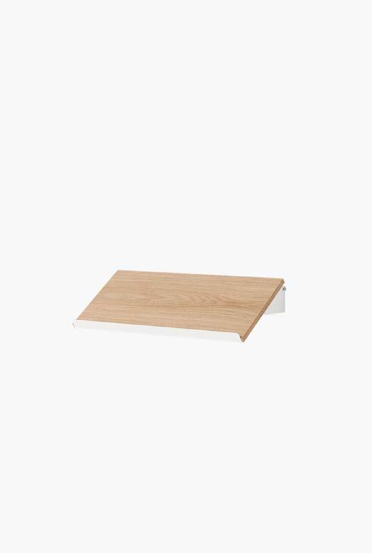 Add shelves to your wall bars. Choose your desired shelf finish and the shelf supports that match the colour of your wall bars. All elements are attached to the wall bars with flatknurled screws.