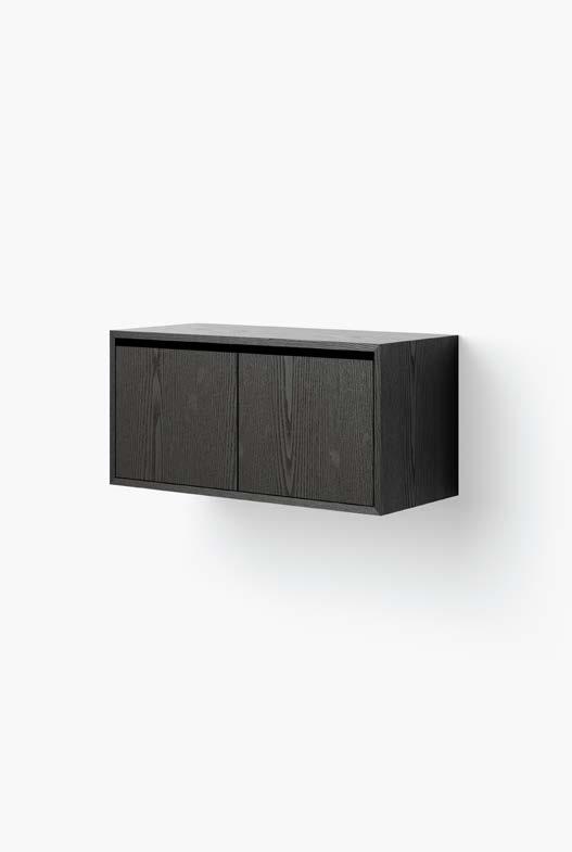 Include cabinets in your wall shelf to store the items that you wish to hide away. The New Works Cabinets can be mounted on the wall bars or be used as standalone pieces mounted directly on the wall with the included bracket.
