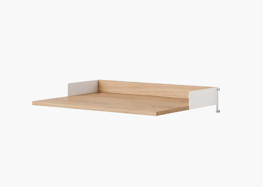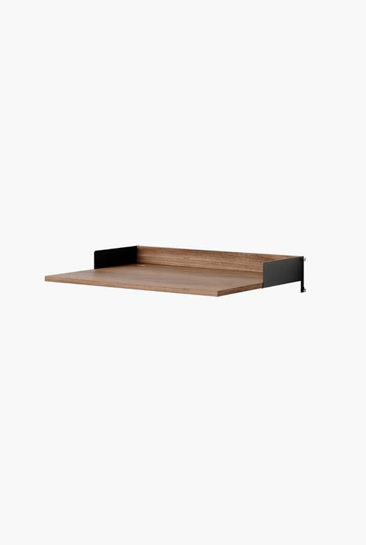 Add utility to your shelving system with functional elements that tailor your wall shelf to its specific purpose. A Desk Element or a Pocket Shelf are great additions to an office shelf, whereas elements for storing clothes and shoes allow you to compose a wall shelf fit for a hallway or walk-in.