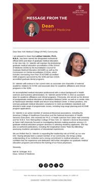 The Dean’s Newsletters are crafted quarterly by the deans of each of the three schools: SOM, SHSP, and GSBMS. Each newsletter includes a message from the respective dean, along with the most recent school-specific updates, profiles, events, accomplishments, and other relevant content tailored to the interests of their students and faculty. SOM produces two newsletters: one providing general updates and the other focusing on research.