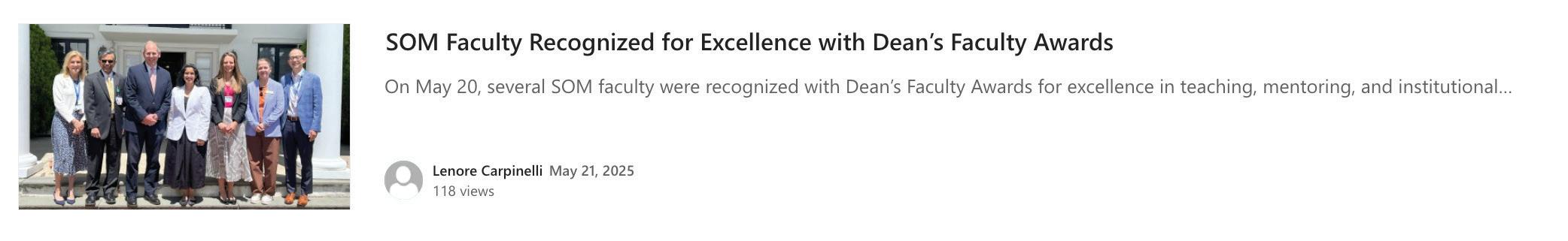 May 21, 2025: For Some Anxious Faculty, Family Offers Relief — Marina K. Holz, Ph.D., M.P.H. ’23, Dr.P.H. ’24, dean of the GSBMS, special assistant to the chancellor, professor of cell biology and anatomy, and interim chair of the Department of Biochemistry and Molecular Biology