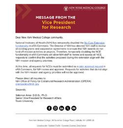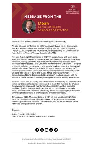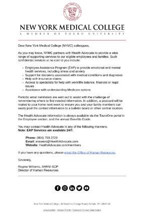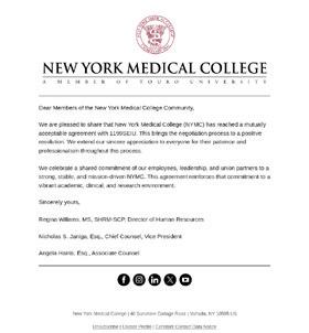 The Office of Public Relations of New York Medical College (NYMC) is dedicated to supporting the College’s mission, strategic plan, and a variety of institutional initiatives through the use of effective and accurate communications tools. The Office is responsible for all aspects of internal and external communications of NYMC, including media relations, official College social media accounts, branding, internal communications, publications, and the nymc.edu website. The Office of Public Relations develops and maintains open, transparent channels of communication with all College stakeholders and leverages College experts to share the NYMC story with the world.