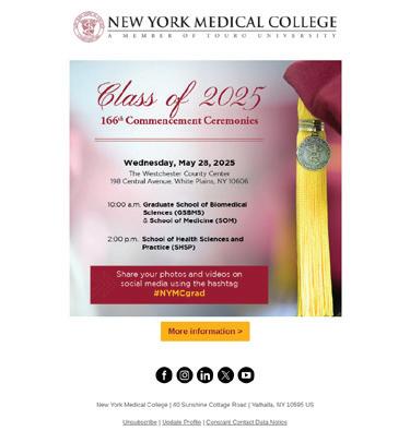 NYMC proudly celebrated the 165th anniversary of its founding in 1860, continuing the legacy of advancing the frontiers of science and medicine, and preparing generations of physicians, researchers, and healthcare leaders to shape a healthier and more compassionate world.