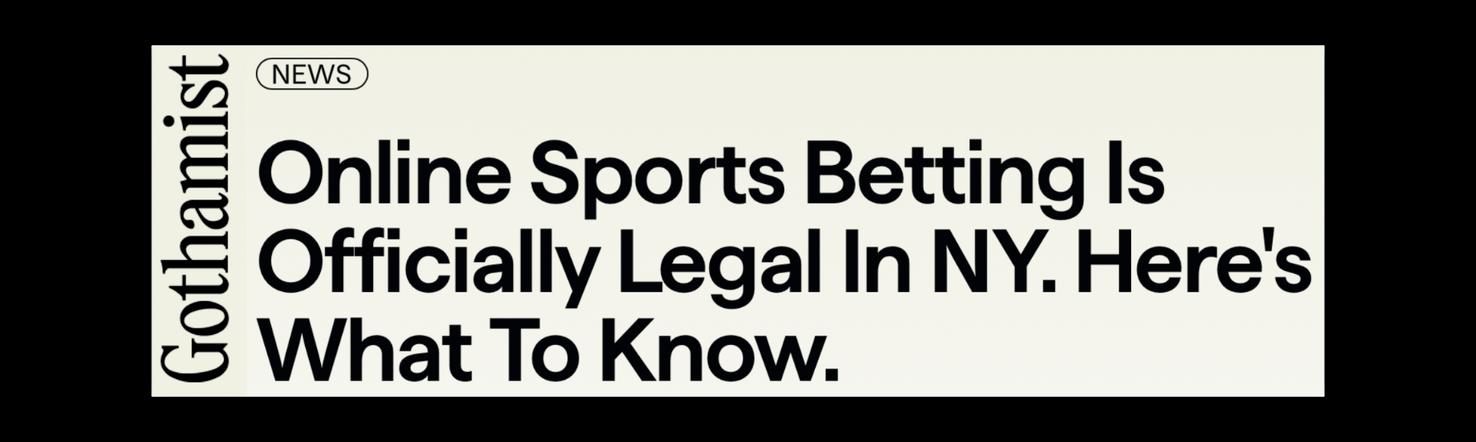 See https://www.gaming.ny.gov/gaming/index.php. See also https://www.prnewswire.com /news-releases/caesars-sportsbook-debuts-mobile-sports-betting-in-new-york301456660.html; https://press.fanduel.com/press-releases/press-releasedetails/2022/FanDuel-Group-Bringing-Americas-1-Sportsbook-to-NewYork/default.aspx#:~:text=NEW%20YORK%2C%20Jan.,scheduled%20for%20Saturday%2C %20January%208; https://ir.rushstreetinteractive.com/news/news-details/2022/BetRiversto-Launch-Online-and-Mobile-Sportsbook-in-New-York-State-This-Saturday-MorningJanuary-8th/default.aspx; https://www.draftkings.com/news-2022-01-draftkings-set-tolaunch-mobile-sports-betting-in-new-york-on-saturday2.