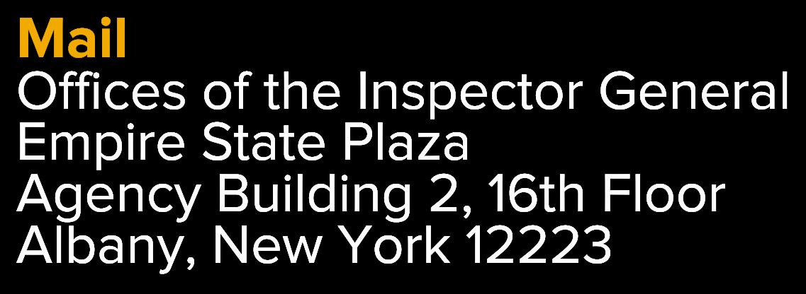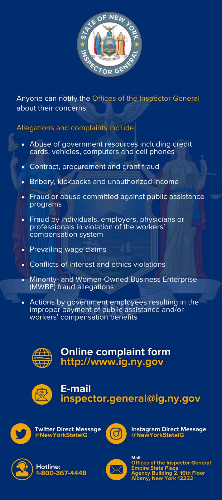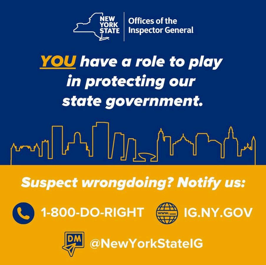 omprised of three YSIG”); the Office of the the Office of the New al (“WCFIG”). In June of f the Gaming Inspector minate corruption, fraud, tate entities under our offices across the state, ern, and Syracuse.