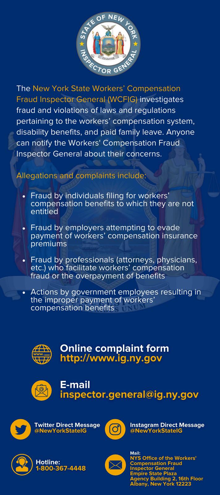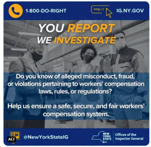 Three years later, in 2015, Governor Cuomo added another appointment to the State Inspector General’s portfolio and appointed IG Leahy-Scott as the Workers’ Compensation Fraud Inspector General under Workers’ Compensation Law §136.