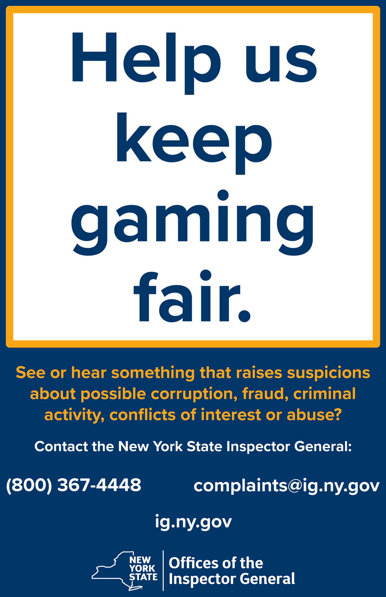 In 2013, the Office of the Gaming Inspector General (GIG) was created to ensure that all lawful gaming in New York State, including horse racing and casino and mobile wagering, are of the highest integrity, credibility, and quality In June of 2021, the Gaming Inspector General was brought under the umbrella of the Office of the New York State Inspector General. OIG’s Gaming Oversight Division is housed within NYSIG and is tasked with investigating allegations of corruption, fraud, criminal activity, and conflicts of interest or abuse related to gaming activity.
