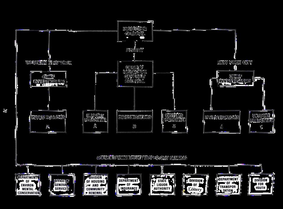 Initially, the Office included five total employees: the Inspector General, a borrowed secretary, two investigators located in Albany, and one investigator located in New York City The Office quickly expanded from five employees to 23 employees in the first two years. The Albany office grew to eight investigators, a deputy inspector general/counsel, and four administrative staff. The Buffalo office, established in 1987, housed three investigators. The New York City office had a chief investigator, four investigators, and one administrative staff In 1992, six years after its creation, and with a budget of $1.5 million, the Office grew to 27 employees.