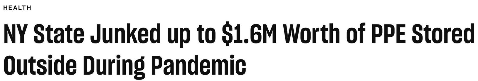 In November 2023, the IG issued a report detailing that over $560,000 worth of Personal Protective Equipment (PPE) purchased during the COVID-19 Pandemic by the New York State Department of Health (DOH) for use by the New York State Veterans Home at St. Albans in Jamaica, Queens, was ruined as result of being stockpiled on tarp-covered, weather-exposed pallets in a parking lot outside St Albans due to a lack of storage space and significant deficiencies in both intra- and inter-agency communication