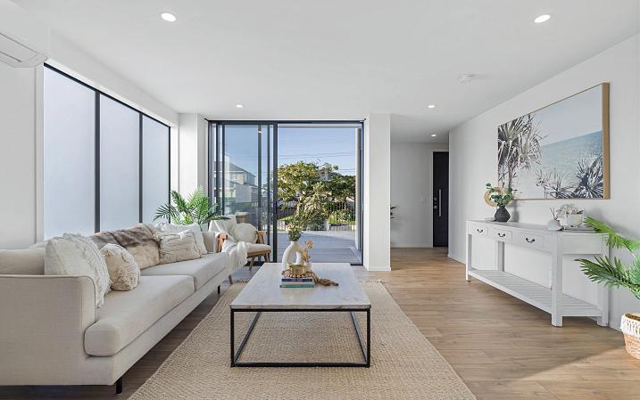 Bathed in natural sunlight this end premium townhouse in the Bask Residences complex is the ultimate in coastal living.