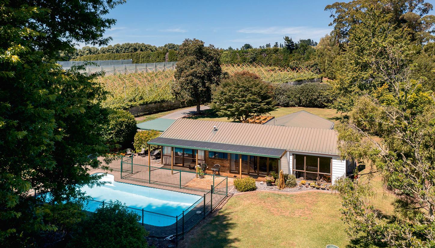 An elegant, secluded country residence nestled at the end of a pretty Cherry Blossom tree lined road in popular Te Puna. Birdlife abounds in sun saturated parkland grounds that merge to a mature avocado orchard. The 1970s dwelling has been upgraded and extended, honouring its beautiful, vaulted ceilings, enhancing the lightness and warmth of its atmosphere, and inviting connection with the solar heated pool, jasmine draped gazebo, and garden. Classic, timeless, and spacious living areas span the sunniest side, guest suite privately in one corner, family bedrooms and massive master suite upstairs. Add a versatile mezzanine and a very mid-century games room with a pool table in situ for a home ideal for peaceful retreat or social sharing. A high stud, three-bay barn is one of two sheds in the 78 tree (approx.) orchard enjoying a productive microclimate, its income a bonus on this family haven of 2.2590 hectares a kilometre from the local school, five mins from Bethlehem.