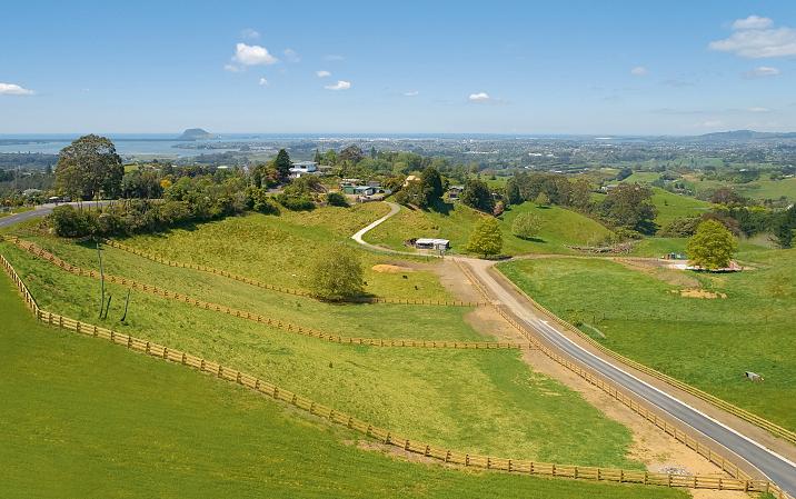 Above the coast and below the bush line of the forest park a beautiful farm spreads across the foothills of the Kaimai Ranges; 29.1353 hectares (more or less) of spectacularly located, sustainable, ecologically special horse and livestock country. The contemporary glass and steel home enjoys elevation for a stunning panorama of the Bay of Plenty coastline and Pacific Ocean. The property includes a second residential title over one hectare which shares the breath-taking outlook. Sealed drive weaves through the land from over 400 sqm of sheds and an equestrian arena near the entrance to the home at the top, through pasture and carbon credit qualified native trees, pristine streams flowing from the forest. Raise your animals on a fine farm demonstrating huge investment in infrastructure. Live in glorious isolation not far off the main highway to urban amenities.