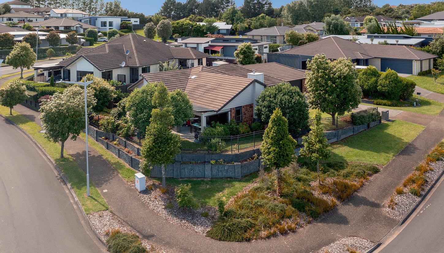 Attractive walls define this corner property, above which a solid, timeless, and immaculately presented home benefits from the elevation of its near flat 709sqm with low maintenance grounds and pretty trees. One of the earlier builds (2008) in the now beautifully established Lakes residential area, the spacious home has a comprehensive sky lit kitchen with new appliances and a layout which places the living areas and master bedroom as one zone. Bifold doors create an easy connection to covered patio and grape draped pergola by a soothing water feature. Three generous bedrooms span the hall to the garage where there is plenty of space for pottering in the large workshop and concealed utility area, plus, good off-street parking. Ample local amenities, Tauranga Crossing shopping centre very handy, and opportunities for recreation in the myriad of walking and cycling trails in The Lakes. It is an easy commute to Tauranga's CBD via the expressway. Boundary indicative only.