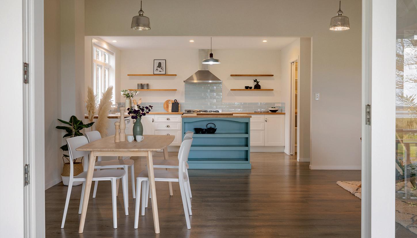 The accommodation level of the main house has 4 double bedrooms with garden and orchard views including master with ensuite and walk in wardrobe. Heated with a cosy woodfire burner the generous living and dining area has a natural flow and connection to the orchard, with doors opening to an elevated deck.