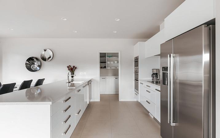 The mid level of the home is centred around the outdoor entertaining area with swimming pool and hot tub. Easy flow is maximised from the dual living spaces which are connected by the dining, kitchen, and butler's pantry.