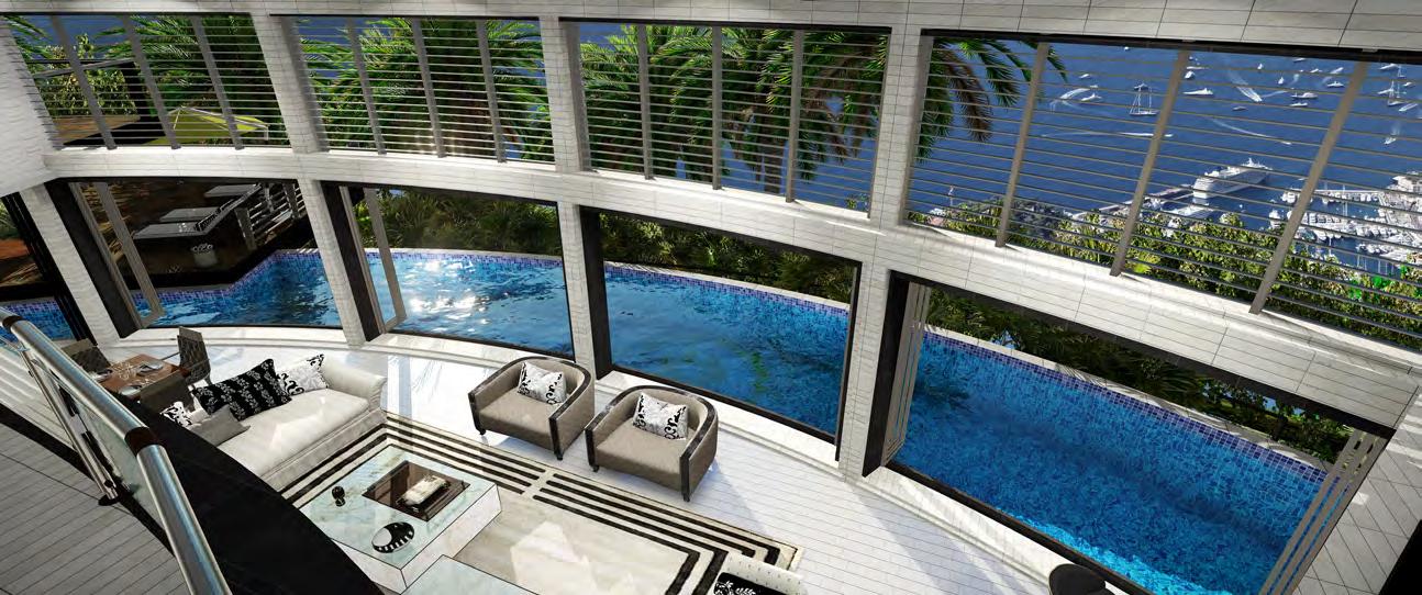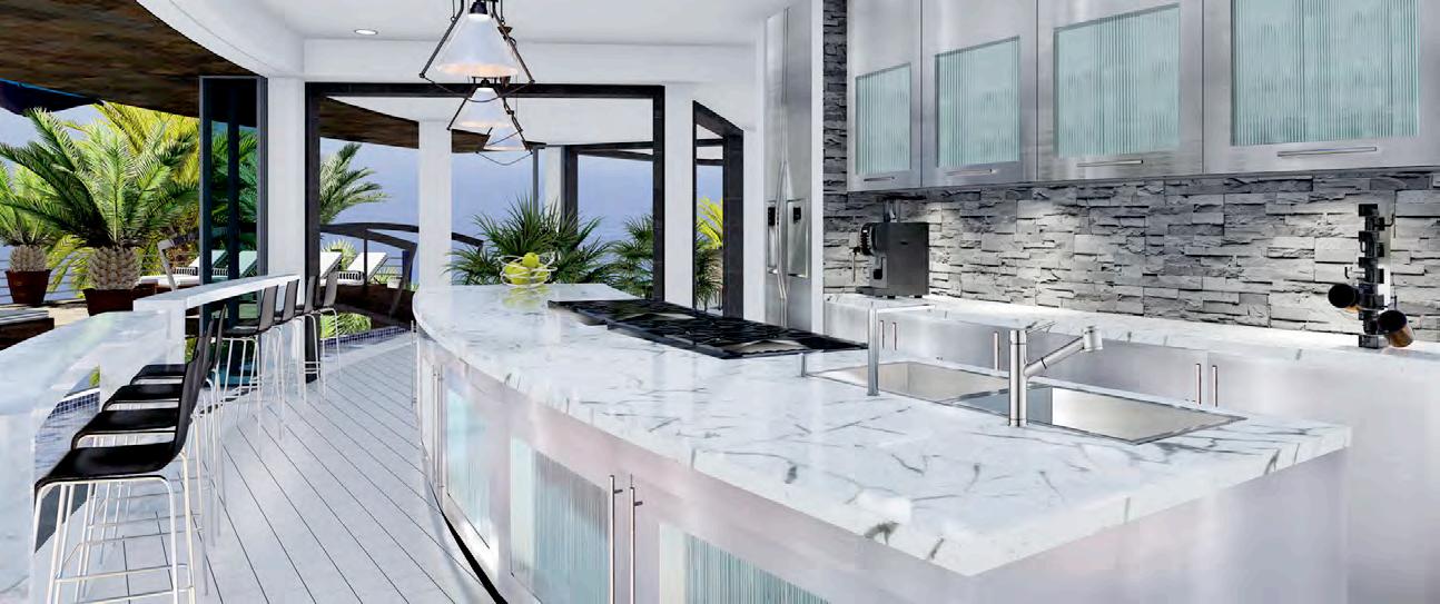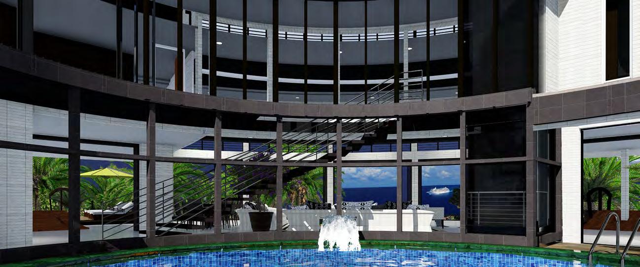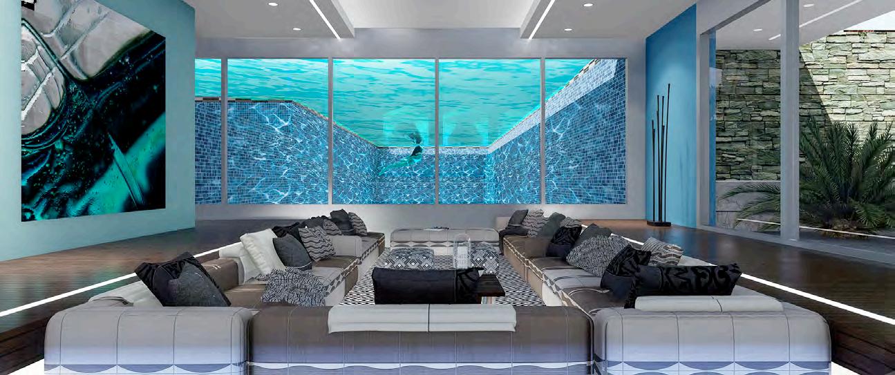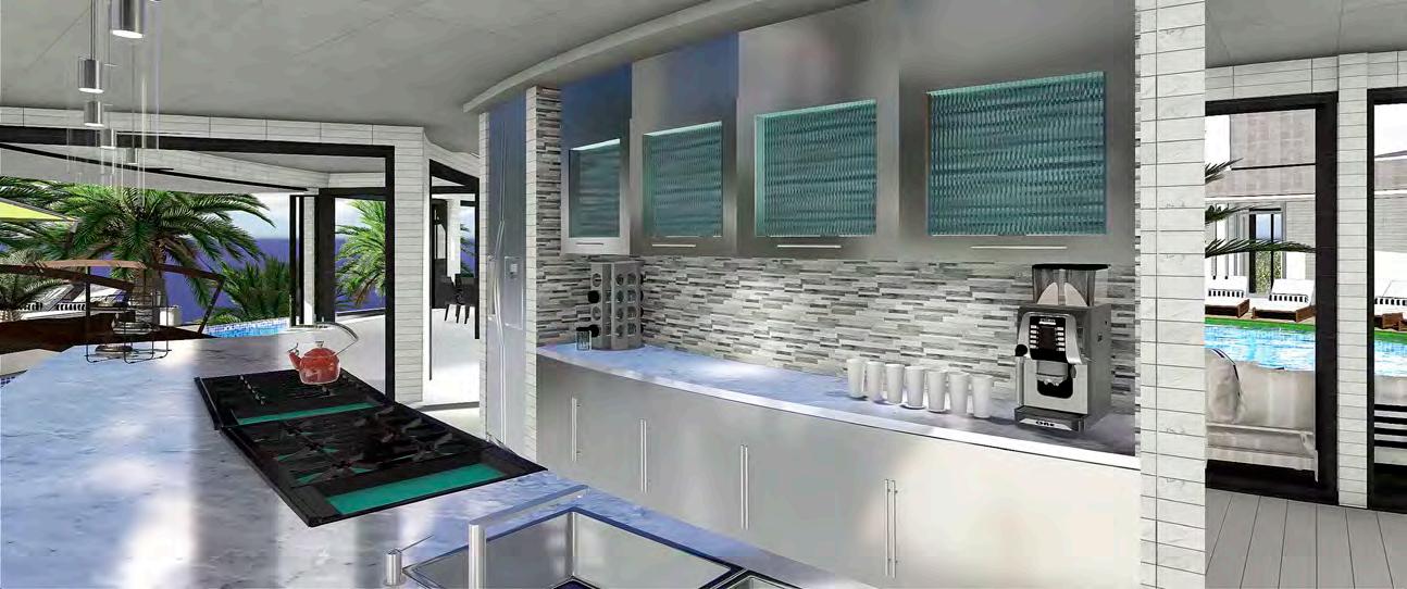 interchange between transparency and an opaque state by applying voltage. Custom Italian marble is used throughout the home and luxury fixtures are custom designed just for this project. Other options are movie theater room, wine cellar, fitness studio, SPA and massage treatment room with balcony treatment area. These options would replace some of the bedrooms on the first level and second level. The home can be configured to the owners dream floor plan. Finally, the home is 100% OFF-GRID with a ½ Megawatt of power using solar hybrid electromagnetic generators for 100% Green Energy. The home owner owns the power generators and any excess energy can even be sold back to the grid daily as an additional income.