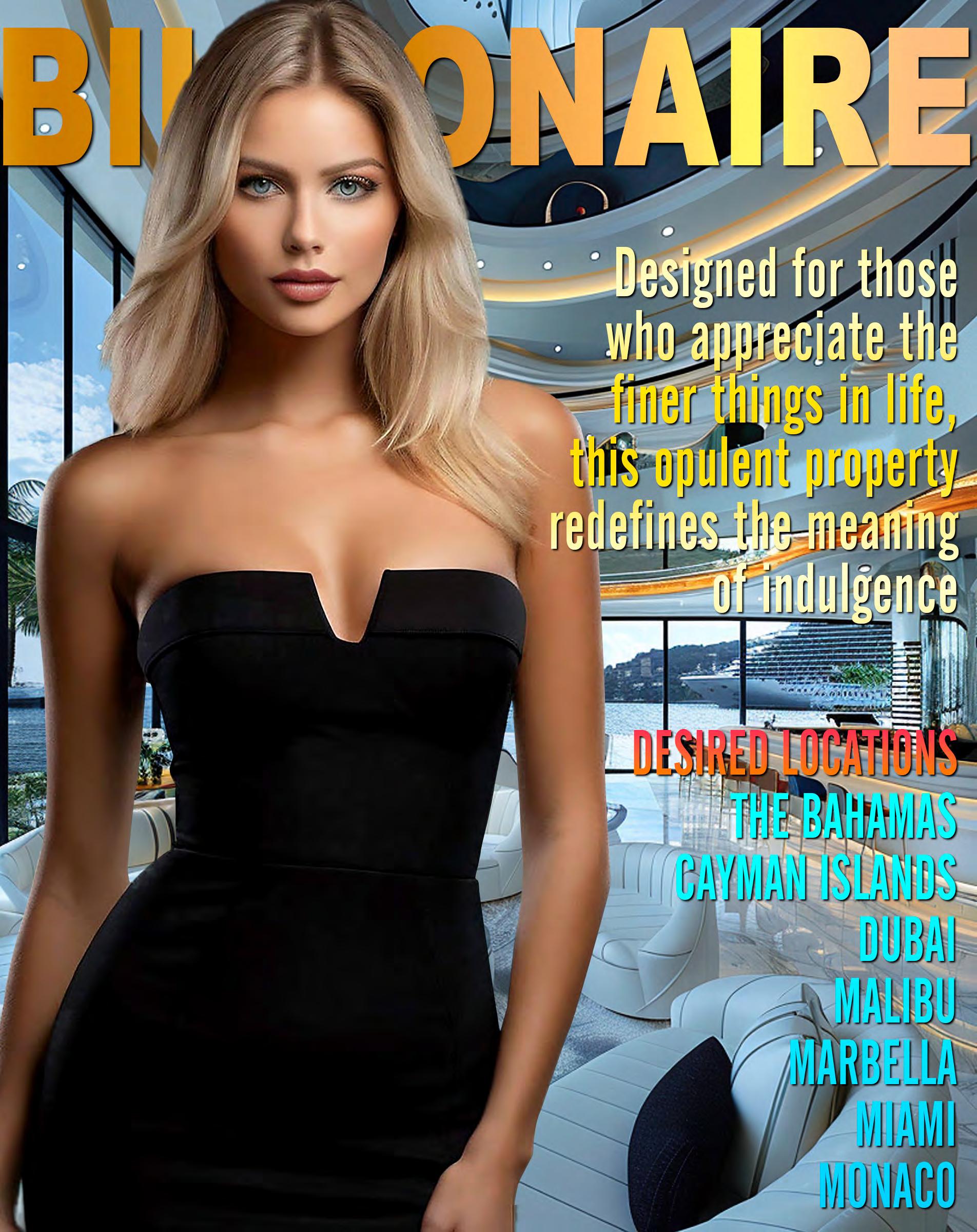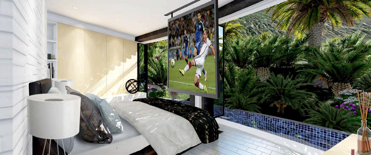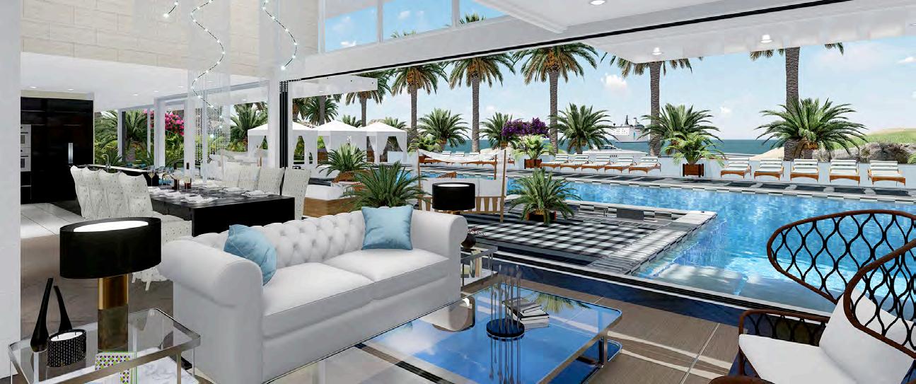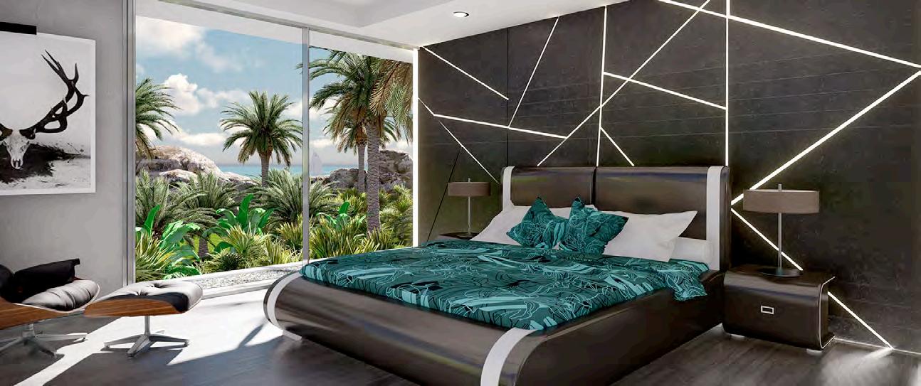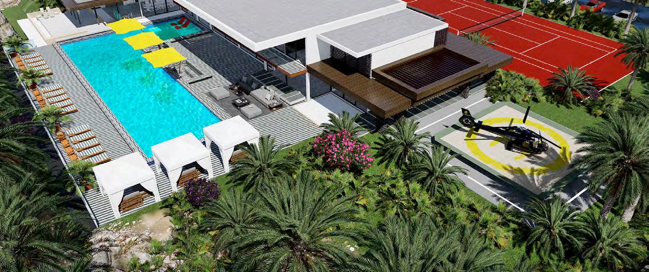 interchange between transparency and an opaque state by applying voltage. Custom Italian marble is used throughout the home and luxury fixtures are custom designed just for this project. Other options are movie theater room, wine cellar, fitness studio, SPA and massage treatment room with balcony treatment area. These options would replace some of the bedrooms on the first level and second level. The home can be configured to the owners dream floor plan. Finally, the home is 100% OFF-GRID with a ½ Megawatt of power using solar hybrid electromagnetic generators for 100% Green Energy. The home owner owns the power generators and any excess energy can even be sold back to the grid daily as an additional income.