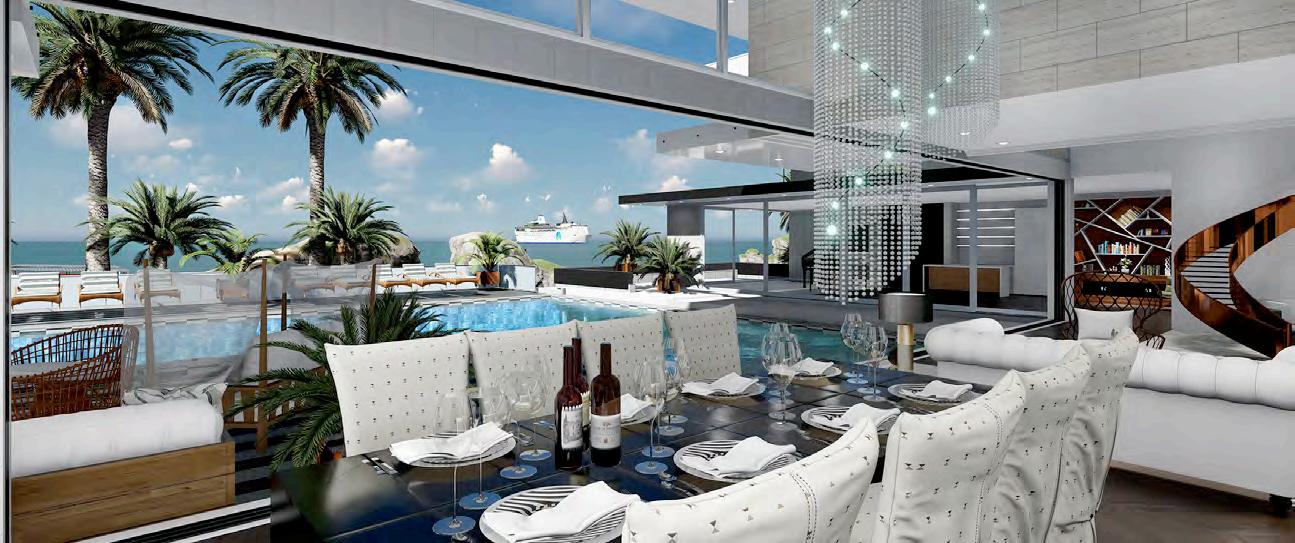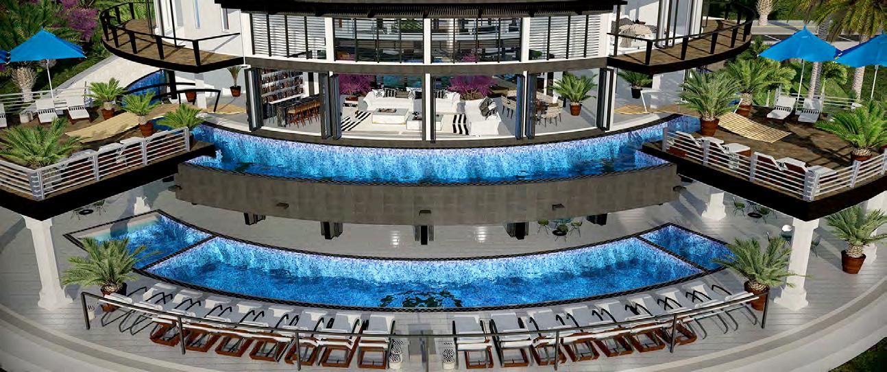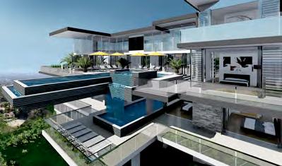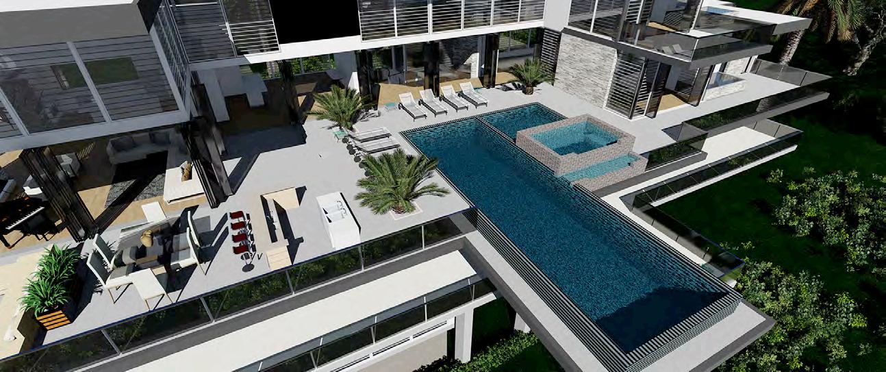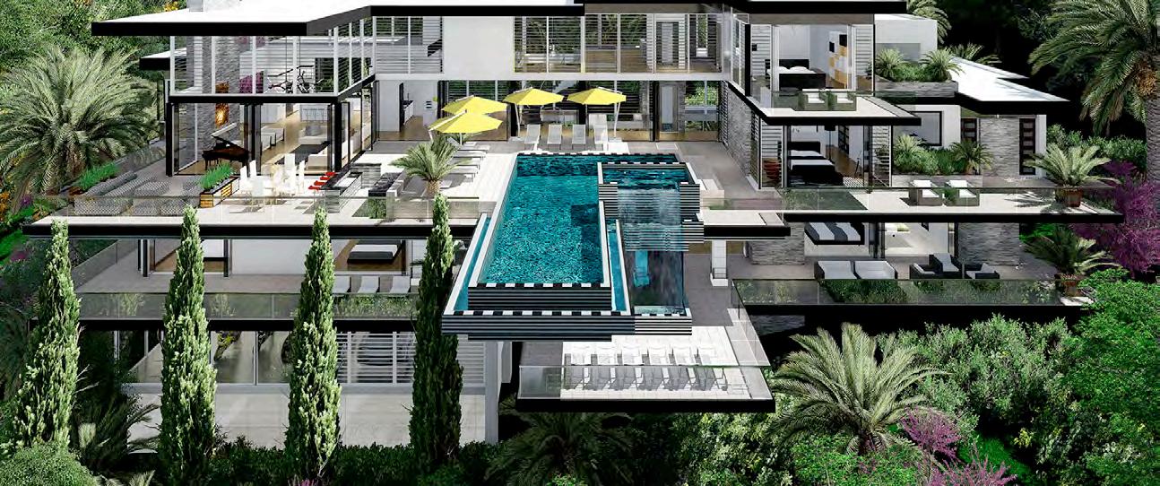Inspired for Haute Couture living, this four-level home showcases the dramatic Cantilever pool extending into the air with no beams attached below. The home has a spectacular view from the spa jacuzzi that overflows into a waterfall to the second pool beneath it. This magnificent home is for the daring home owner to stand above all other homes on a hilltop with ocean view.
