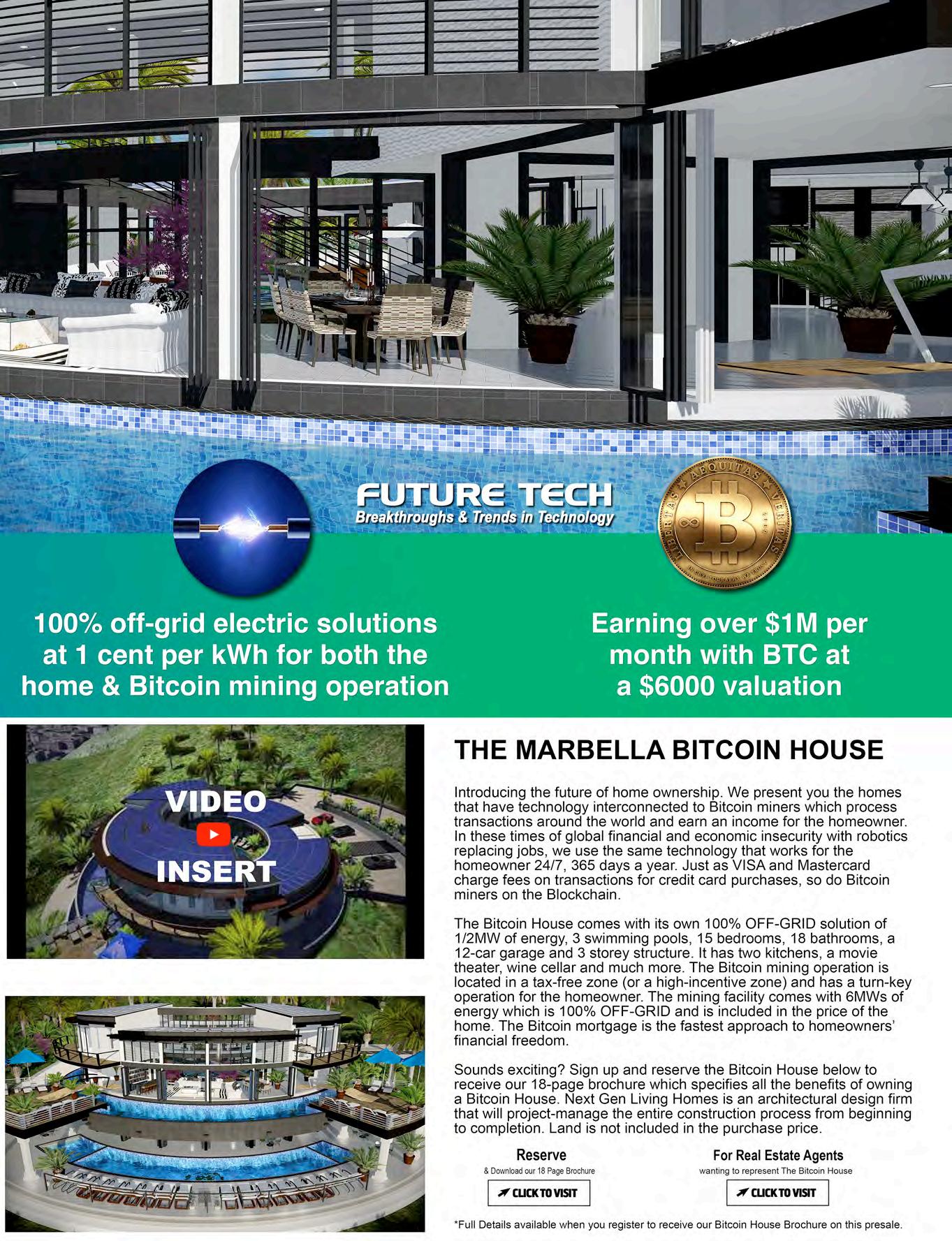 The Bitcoin House is estimated to be completed in 18-20 months with construction permits in place, engineering and construction and luxury interior installations.
