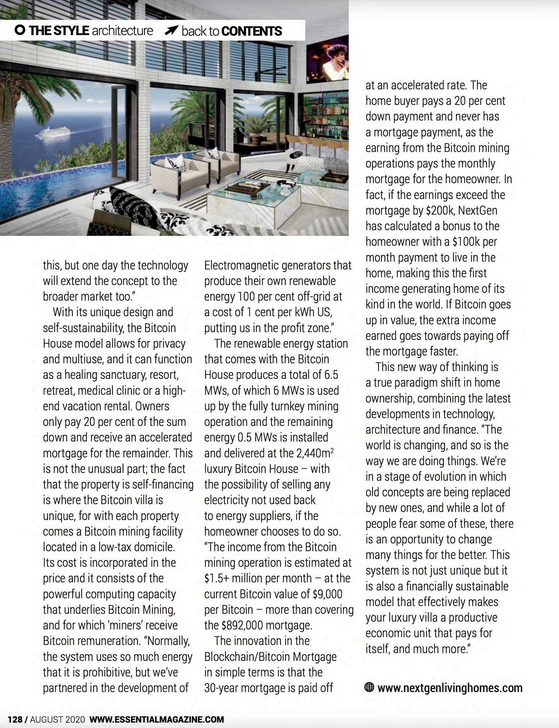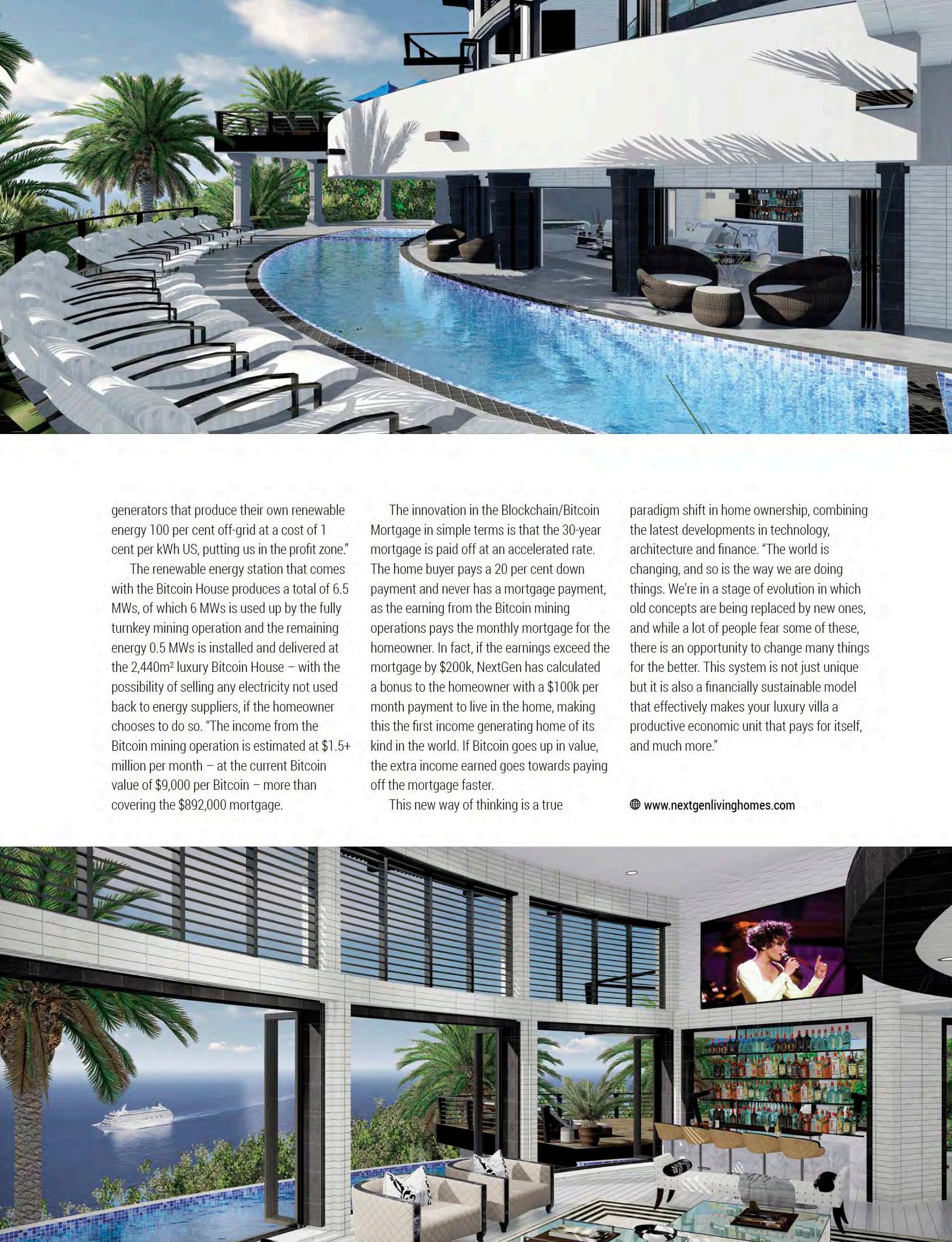 NextGen has added a bonus to the home owner that if the Bitcoin earnings exceed the mortgage payment by $200k, then the home owner is paid a $100k per month or $1.2M per year to enjoy living in the Bitcoin House while the full mortgage is paid at an accelerated rate.