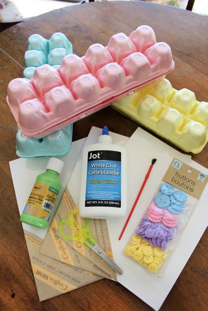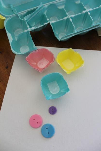 To get started, first have your child decide what egg carton colors you will be using. Then, pick out the buttons that will go in the center.