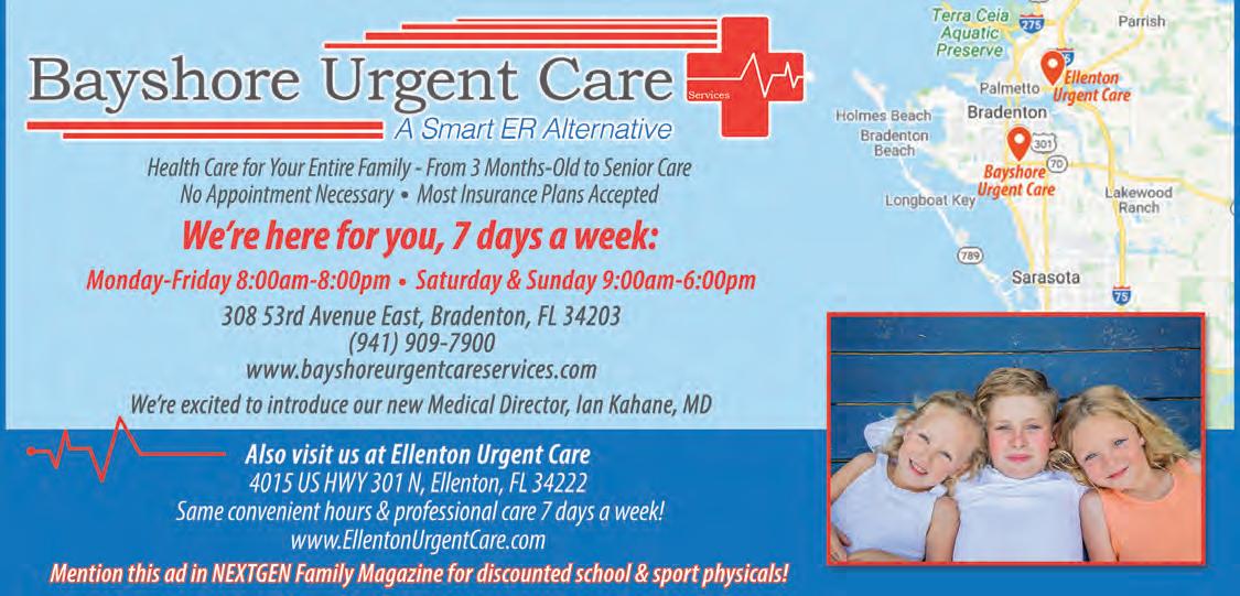 68 Call (941) 757-2910 or visit www.elc-manatee.org today! Sponsorship by the Early Learning Coalition of Manatee County and the State of Florida, Division of Early Learning. Florida Department of Agriculture and Consumer Services Registration #CH27655 “A COPY OF THE OFFICIAL REGISTRATION AND FINANCIAL INFORMATION MAY BE OBTAINED FROM THE DIVISION OF CONSUMER SERVICES BY CALLING TOLL-FREE 1-800-HELP-FLA WITHIN THE STATE OR VISITING THEIR WEBSITE www.FloridaConsumerHelp.com. REGISTRATION DOES NOT IMPLY ENDORSEMENT, APPROVAL, OR RECOMMENDATION BY THE STATE.” DO YOU NEED HELP PAYING FOR CHILD CARE? We can help, call us today to see if you’re eligible! Child Care Resource & Referral - Offering FREE, unbiased, personalized information on child care programs and providers in the area School Readiness - A child care subsidy based on income and family size for children aged birth to 12 Call (941) 757-2910 or register online at www.elc-manatee.org FREE preschool for all four-year-olds residing in FL regardless of family income Sponsorship by the Early Learning Coalition of Manatee County and the State of Florida, Division of Early Learning. Florida Department of Agriculture and Consumer Services Registration #CH27655 “A COPY OF THE OFFICIAL REGISTRATION AND FINANCIAL INFORMATION MAY BE OBTAINED FROM THE DIVISION OF CONSUMER SERVICES BY CALLING TOLL-FREE 1-800-HELP-FLA WITHIN THE STATE OR VISITING THEIR WEBSITE www.FloridaConsumerHelp.com. REGISTRATION DOES NOT IMPLY ENDORSEMENT, APPROVAL, OR RECOMMENDATION BY THE STATE.” Take charge of your health and schedule with our primary-care physicians today! Our Physicians Lead the Nation in Caring for the Whole Family 941.933.8103 931 10th Street E, Palmetto, FL 34221 Chantel Jacobs, MD Family Medicine (8 and up)