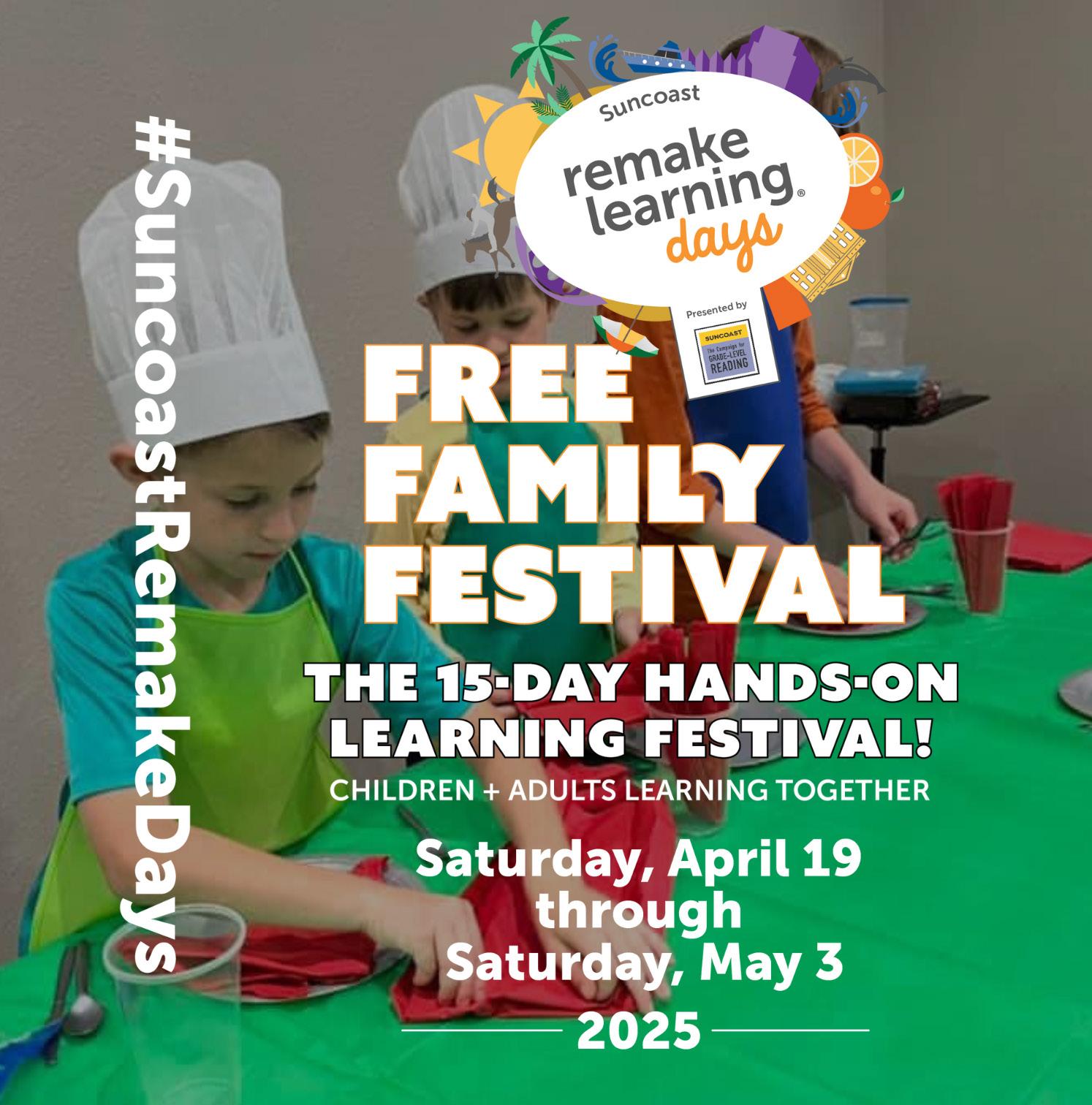 Suncoast Remake Learning Days, a free, 15day regional learning festival for families, is set to return on Saturday, April 19, through Saturday, May 3, 2025. This year's festival promises to be our most vibrant and engaging, with hands-on learning experiences designed to inspire discovery, connection, and fun for the entire community.