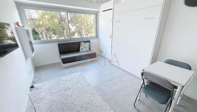Studio de 23,30 m² exposé sud, entièrement rénové, vendu entièrement meublé, clim. réversible, à 2 pas des plages, accès centre de Cannes par le bus ou à pied sans montée. Stationnement facile et gratuit. A voir ! DPE : D. • Fully renovated studio of 23,30m² facing south, sold completely furnished, reversible A/C, 2 steps from the beaches, access to the centre of Cannes by bus or on foot with no climb. Free and easy parking. A Must See !