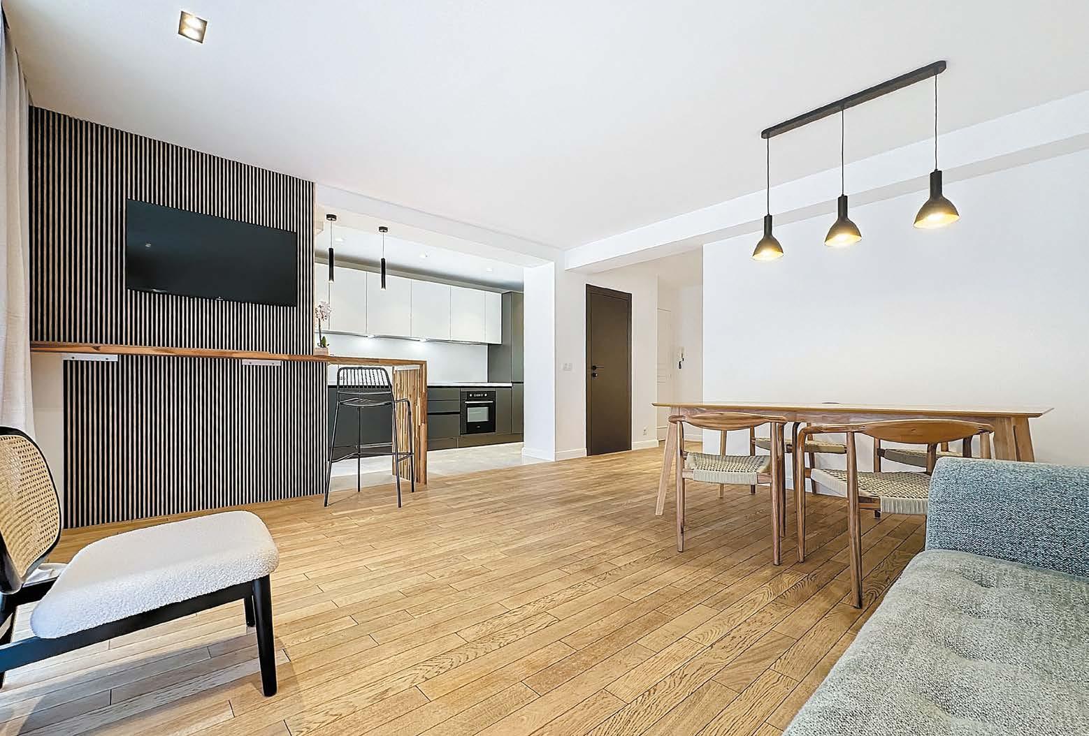 Vue mer et sur le parc pour ce 2 pièces entièrement rénové moderne de 58,33 m² avec terrasse et balcon. Entrée, séjour donnant sur la terrasse, salle à manger avec sa cuisine moderne ouverte équipée, une chambre avec placard, salle de douche, parking et cave. DPE: C. • Sea and park view for this completely renovated modern 58,33 m² 2-roomed apartment with terrace and balcony. Entrance hall, living room opening onto terrace, dining room with modern open-plan fitted kitchen, 1 bedroom with wardrobe, shower room, parking space and cellar. Mobile : 06.60.24.52.40