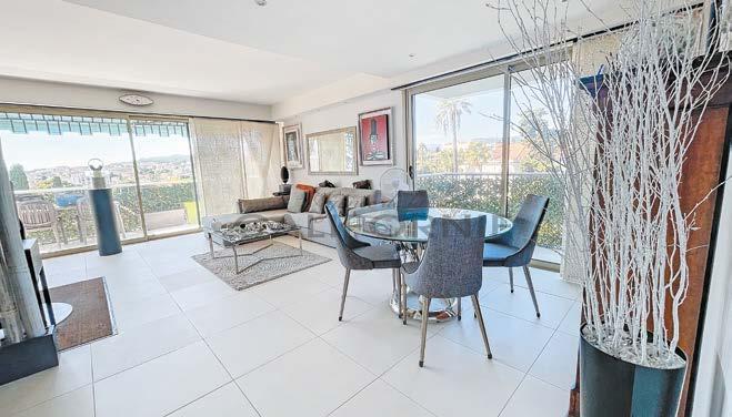 Vente : Au cœur du Palm Beach, à proximité des commerces et des plages, superbe 3/4 pièces de 101 m² en dernier étage avec double terrasse (E et O) de 67 m² et aperçus mer. En parfait état, grand séjour, cuisine équipée, buanderie, bureau/bibliothèque, 2 chambres avec salles d’eau en suite. Inclus : 2 garages. DPE: C. • Sale: In the heart of Palm Beach, close to shops and beaches, stunning 3/4-roomed apartment of 101 m² on the top floor with double terrace (E and W) of 67 m² and sea glimpses. In perfect condition, featuring a large living room, equipped kitchen, laundry room, office/library, and 2 bedrooms with en-suite shower rooms. Includes 2 garages. Réf: 83795026
