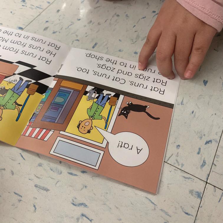 Gradual introduction of the sounds/letters of the alphabet. Reading CVC words within decodable stories.
