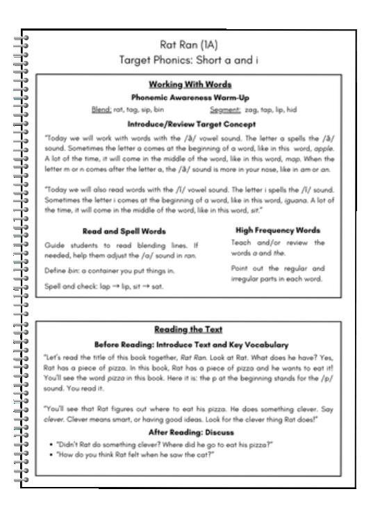 Spiral-bound blending lines provide a quick phonics warm-up for each book and can be used for reinforcement after reading.