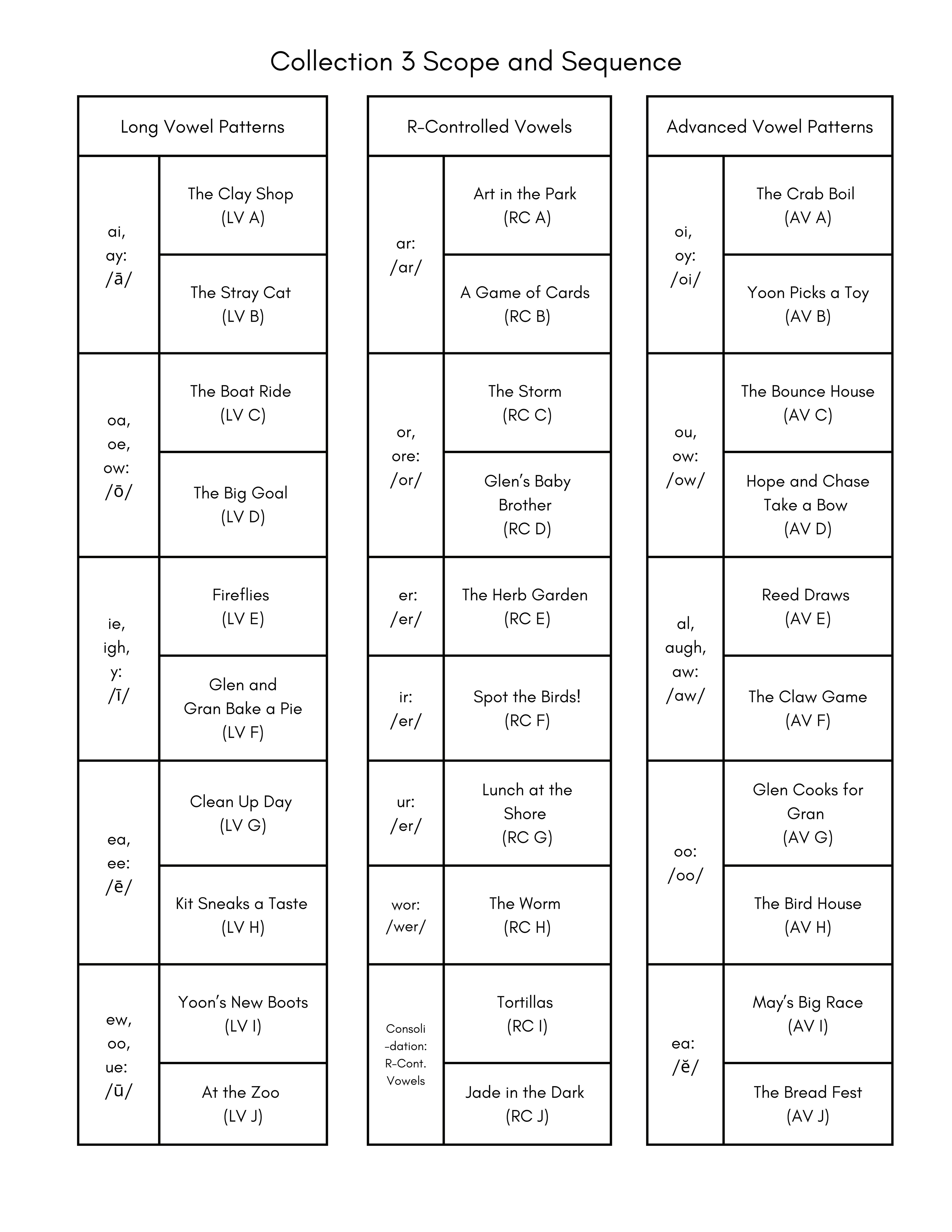 Coll ec t io n 3: Lo ng Vowe l Patter ns , R- Co ntrolled Vowels, Adv an ce d Vowe l Patter ns