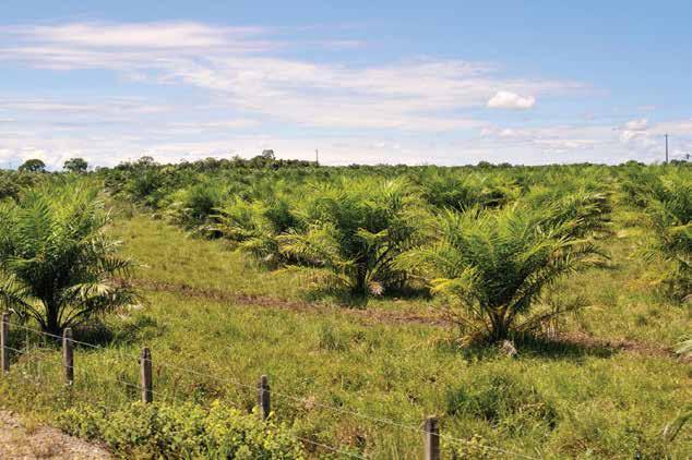 Although question marks have been raised about high yields masking environmental impacts, other vegetable oil crops such as soy, canola and sun ower need up to nine times more area to produce equivalent amounts of oil, according to the International Union for the Conservation of Nature. This fact suits a Colombian palm agro-industry with huge potential areas for expansion – with as much as 44 million hectares of degraded land available, according to some claims.