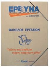 43 εκτύπωση 4χρωμία 500 τεμάχια επιπλέον τεμάχια 1 όψη 500€0,30€ 2 όψεις 560€0,35€ πλαστικοποίηση 80€0,15€ εγκοπή για κάρτα Kλειστό 24x33εκ., ανοιχτό 48x33εκ., χαρτί 300γρ. βέλβετ ή ιλουστρασιόν, εκτύπωση 4χρωμία Μικρές ποσότητες: Ψηφιακή εκτύπωση (το αυτί είναι λευκό) εως 50τεμ. 200€, επιπλέον τεμ. 1€/τεμ. (+60€ πλαστικοποίηση) Εταιρικά folder Φάκελος με λάστιχο 0,70€/τεμ., +280